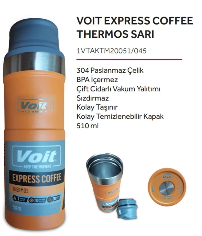 STK-1546 VOIT EXPRESS COFFEE THERMOS 510/Sarı/510 ML